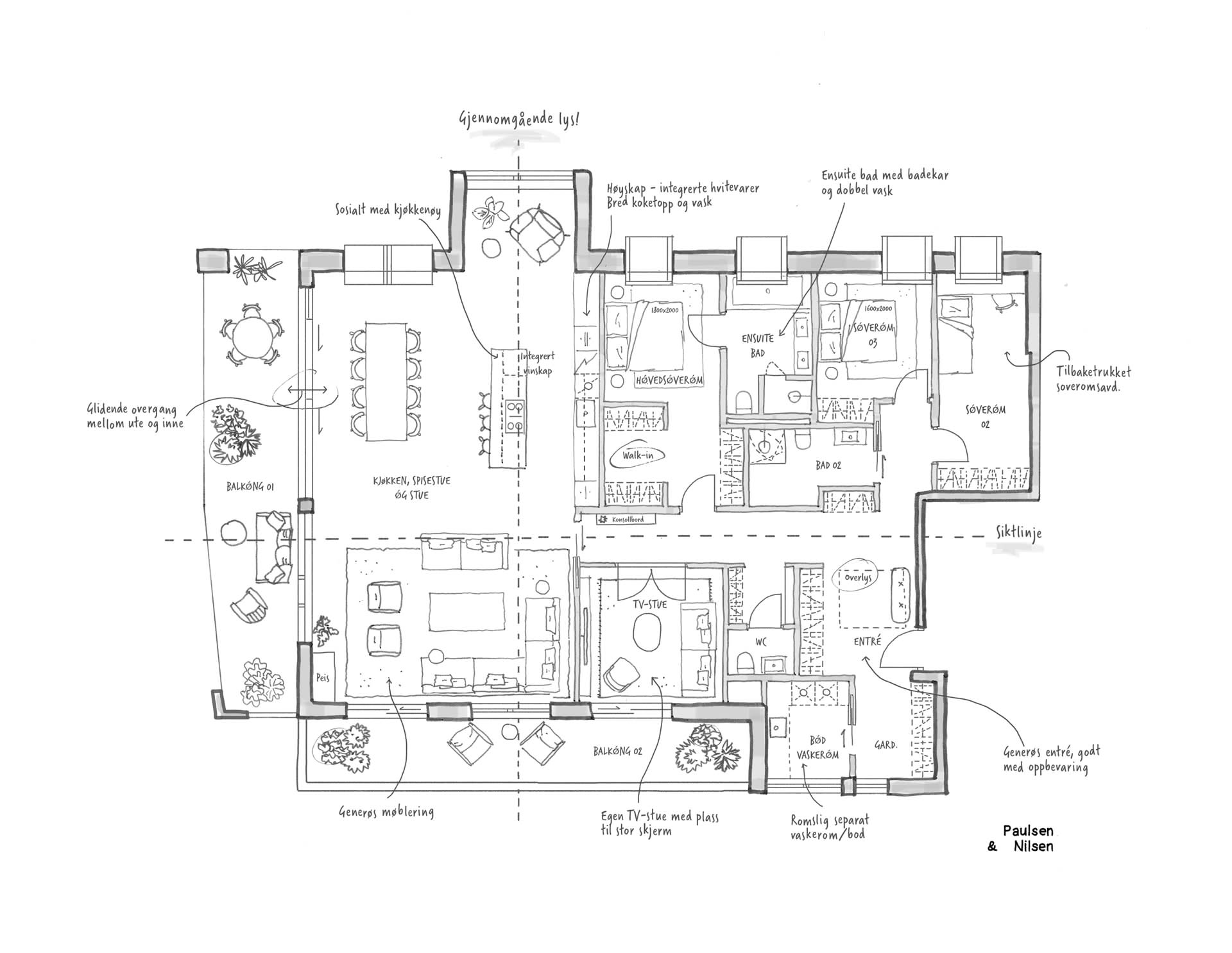I Nøstet Sjøfront er det lagt ned mye ressurser i å maksimere og arbeide inngående med de enkelte leilighetens planløsning, og å ta de viktige prioriteringene som skaper den ekstra følelsen av boglede. Interiørarkitektene i Paulsen & Nilsen har gjort en grundig jobb med hver enkelt plantegning i prosjektet. Det handler om å skape gode siktlinjer og gjennomgående naturlig lys, og at soverom er plassert i stille soner med god plass til nattbord og en ekstra bred seng.