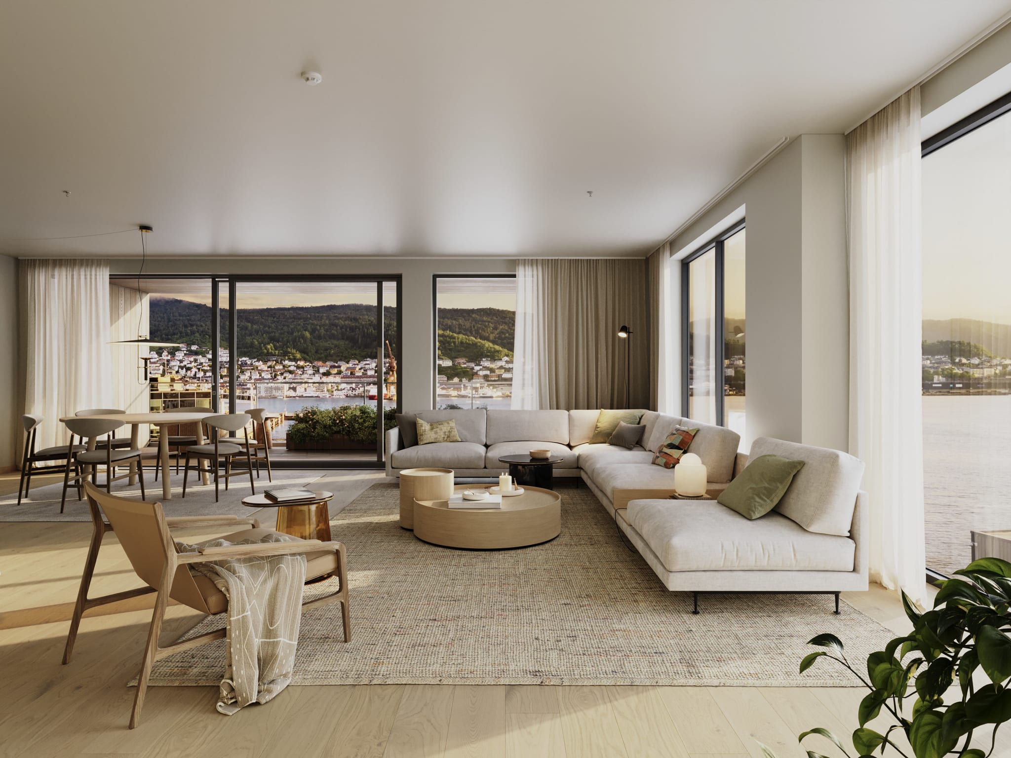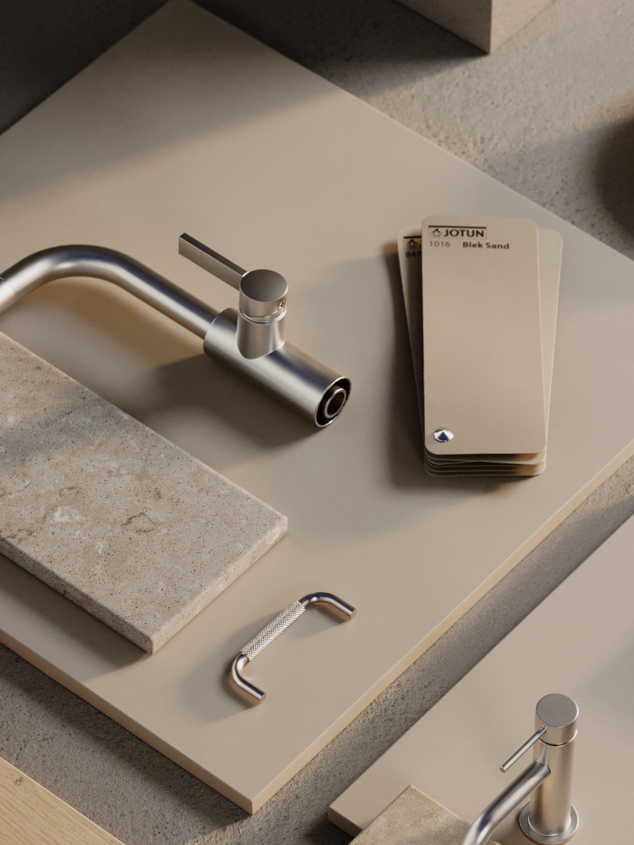 Paulsen & Nilsen har utformet tre ulike, lett maritime interiørkonsepter for Nøstet Sjøfront som beboerne kan velge mellom - med ulike typer treverk, naturstein, farger, materialer og detaljer.